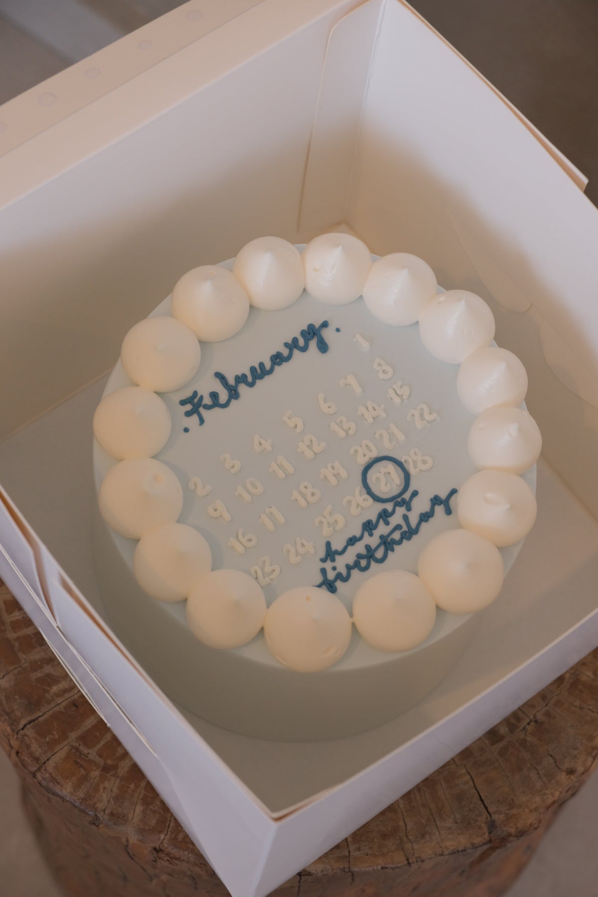 4 inches birthday calendar cake, perfect for 2-5 pax.   Our cake artisan will circle the birthday date of your recipient. Cakes delivery in Penang.